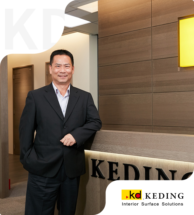 董事長(代表取締役) 曹 憲章 科定企業(Keding Enterprises)は創業以来、「環境にやさしく、健康に配慮した建材」の開発を中心に、「品質」と「デザイン」の相乗効果を活かしながら、社会のニーズに応える製品を提供し、着実な成長を遂げてまいりました。 独自に開発した「KD エコ⁺ラミネート」をはじめとする建築装飾材料事業において、安心・安全・美しさを兼ね備えた空間ソリューションの創出に努め、住宅や商業空間で信頼される「空間デザインメーカー」を目指しています。また、科定は常に革新に挑み、原材料調達、製品設計、製造、包装から販売まで、厳密かつ丁寧な姿勢で品質管理を徹底し、消費者の期待に応える製品とサービスを提供し続けています。