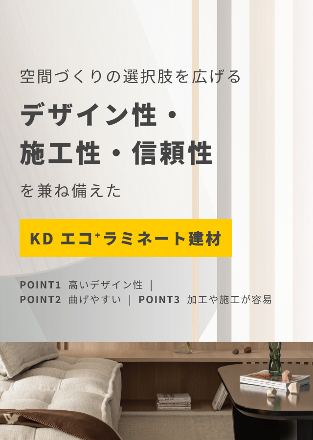 従来のPVCやメラミン化粧板とは異なり、非常にしなやかで割れにくいため、施工や切断がスムーズに行えます。