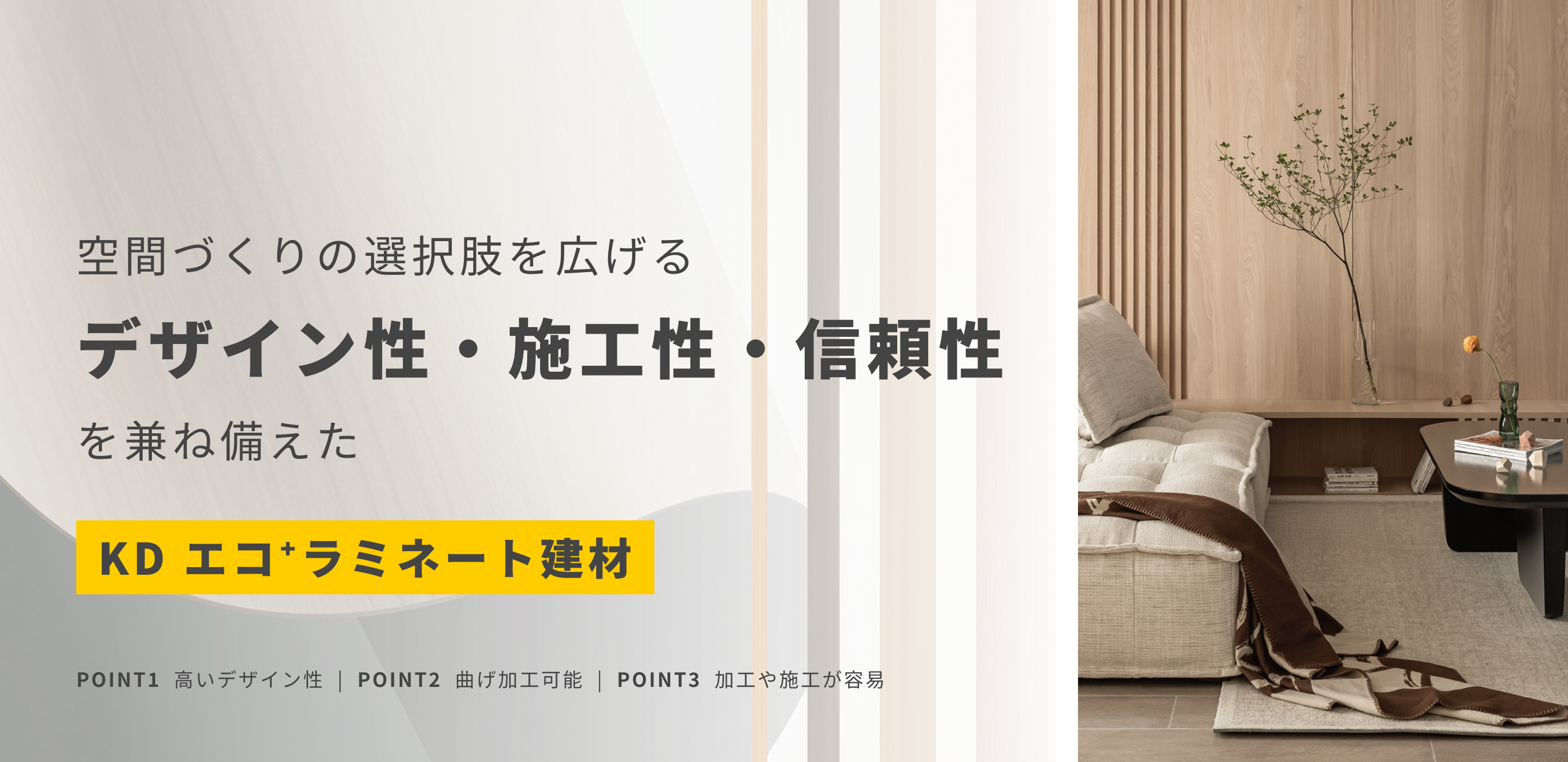 従来のPVCやメラミン化粧板とは異なり、非常にしなやかで割れにくいため、施工や切断がスムーズに行えます。