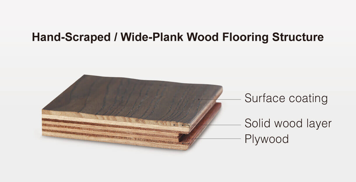 Having uneven surfaces is the main characteristic of hand-scraped flooring,these “wave-like” surface is caused by the surface being scraped by hand prior to the finish.